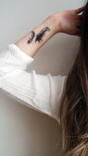 手臂上毛茸茸的羽毛纹身