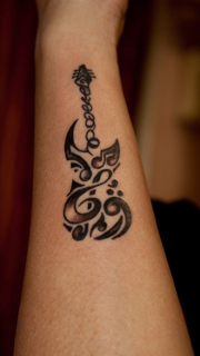 手腕上好看的吉他图腾纹身图案