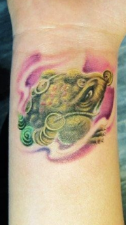 女人手腕处彩色小金蝉纹身图片