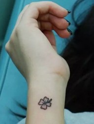 手腕幸运四叶草纹身