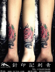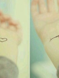 手腕处多款红黑色QK与心形组合的情侣纹身图案