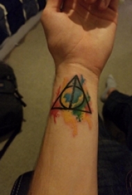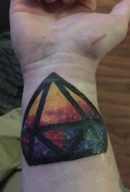 欧美手腕纹身 男生手腕上彩色的几何纹身图片