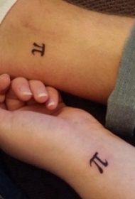纹身符号 情侣手腕上黑色的数学符号纹身图片