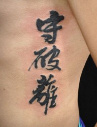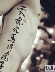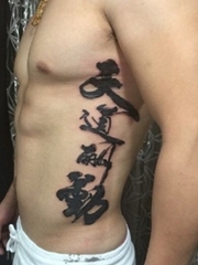 男士侧腰书法汉字纹身