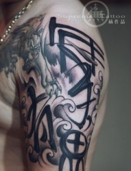 肩部 侧腰部书法纹身