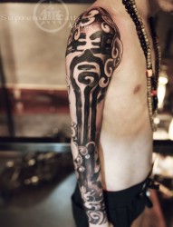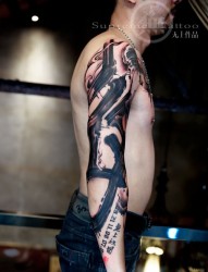 泼墨书法花臂纹身