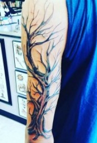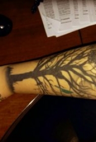 纹身树枝 男生手臂上黑灰色的树纹身图片