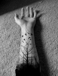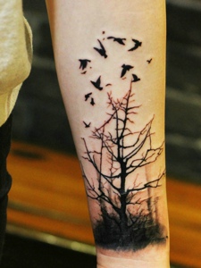 小树枝与小燕子结合的手臂纹身图片