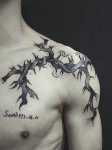 肩膀创意缠绕着的树枝纹身图片