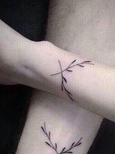 手腕小清新树枝情侣纹身图案