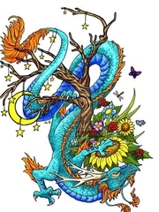 漂亮的传统蓝色龙纹身手稿