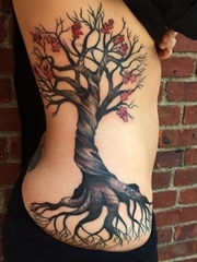 侧腰部个性树枝纹身图片很漂亮