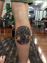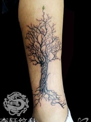 小腿上的形成圆形的大树纹身图片