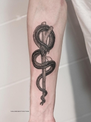 小臂school黑灰蛇树枝纹身图案