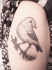 大腿鸟树枝小清新点刺纹身图案