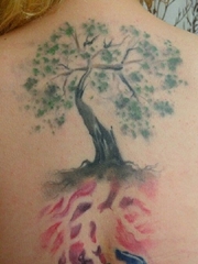 女性后背上漂亮的树纹身水彩纹身图片