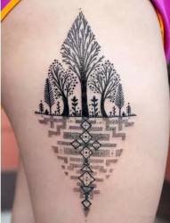 大臂抽象风格的树枝与三角形和人体剪影纹身图案