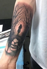 手臂纹身素材 男生手臂上人物和树枝纹身图片
