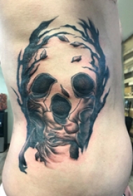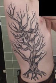 纹身树枝 男生侧腰上黑色的枯树纹身图片