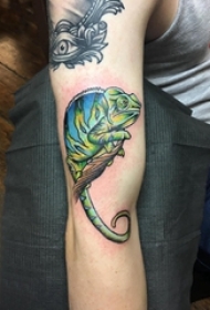 小动物纹身 男生手臂上树枝和变色龙纹身图片