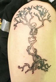 双大臂纹身 男生大臂上树状的骷髅纹身图片