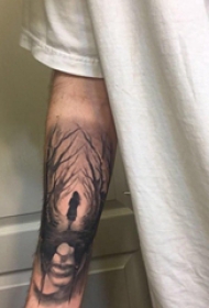 树纹身 男生手臂上黑灰纹身树纹身图片