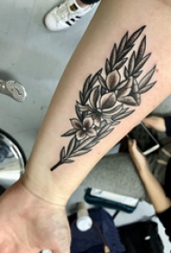 纹身树枝 男生手臂上黑灰纹身树枝图片