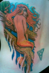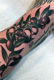 小腿写实风格彩色猫头鹰树枝和符号纹身图案