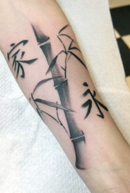 手臂亚洲东方风格的竹子和汉字黑色纹身图案