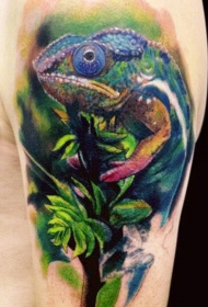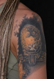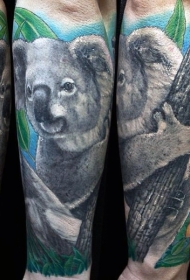逼真的彩色考拉熊和树叶手臂纹身图案