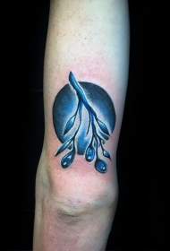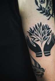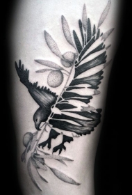 点刺风格黑色小鸟与橄榄枝手臂纹身图案