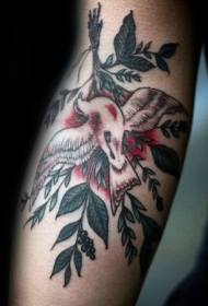 雕刻风格的点刺鸽子树枝手臂纹身图案