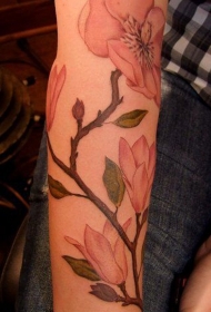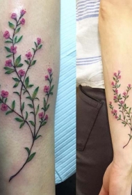 娇嫩的粉红色小花朵树枝手臂纹身图案