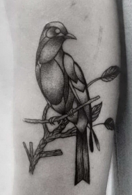 点刺风格黑色的小鸟和树枝手臂纹身图案