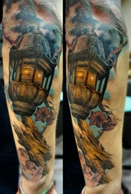 令人印象深刻的灯与树枝彩色手臂纹身图案