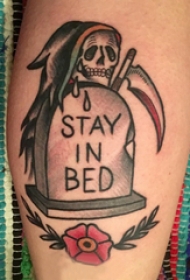 死神镰刀纹身图案 男生小腿上死神和墓碑纹身图片