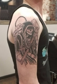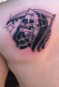 后肩纹身 男生后肩上黑色的镰刀死神纹身图片