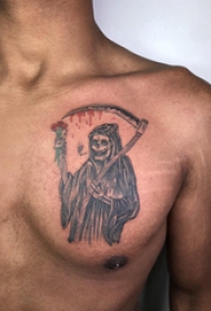 胸部纹身男 男生胸部黑色的死神镰刀纹身图片