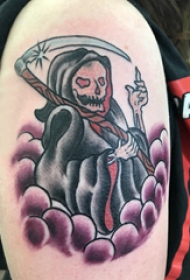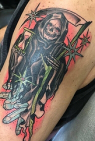 大臂纹身图 男生大臂上彩色的死神镰刀纹身图片