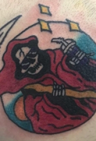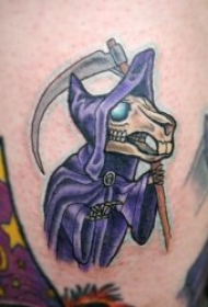 死神镰刀纹身图案 男生大腿上彩色的死神镰刀纹身图片