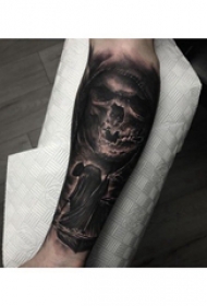 死神纹身 男生小臂上死神和骷髅纹身图片