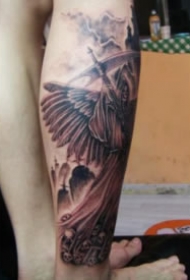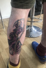 死神镰刀纹身图案 男生小腿上死神和镰刀纹身图片