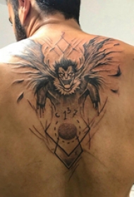 地狱纹身电影 男生后背上黑色的死神纹身图片