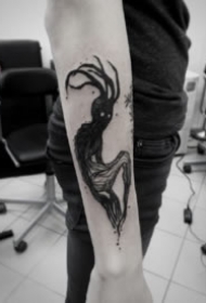 死神小臂纹身 男生小臂上黑灰色的死神纹身图片