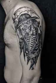 死神纹身 男生大臂上黑色的骷髅死神纹身图片