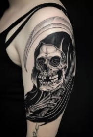 死神镰刀纹身图案 女生大臂上死神镰刀纹身图片