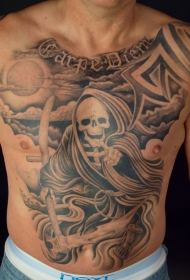 胸部棺材蜡烛花朵沙漏彩绘纹身图案