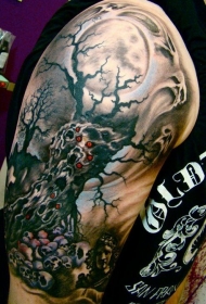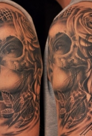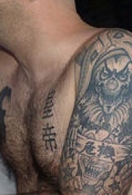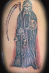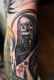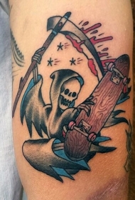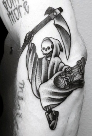 old school有趣的死神和镰刀滑板滑板手臂纹身图案