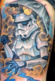 手臂有趣的彩色风暴骑兵与雨伞纹身图案