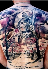 侧肋五彩神秘的血腥死亡鬼纹身图案